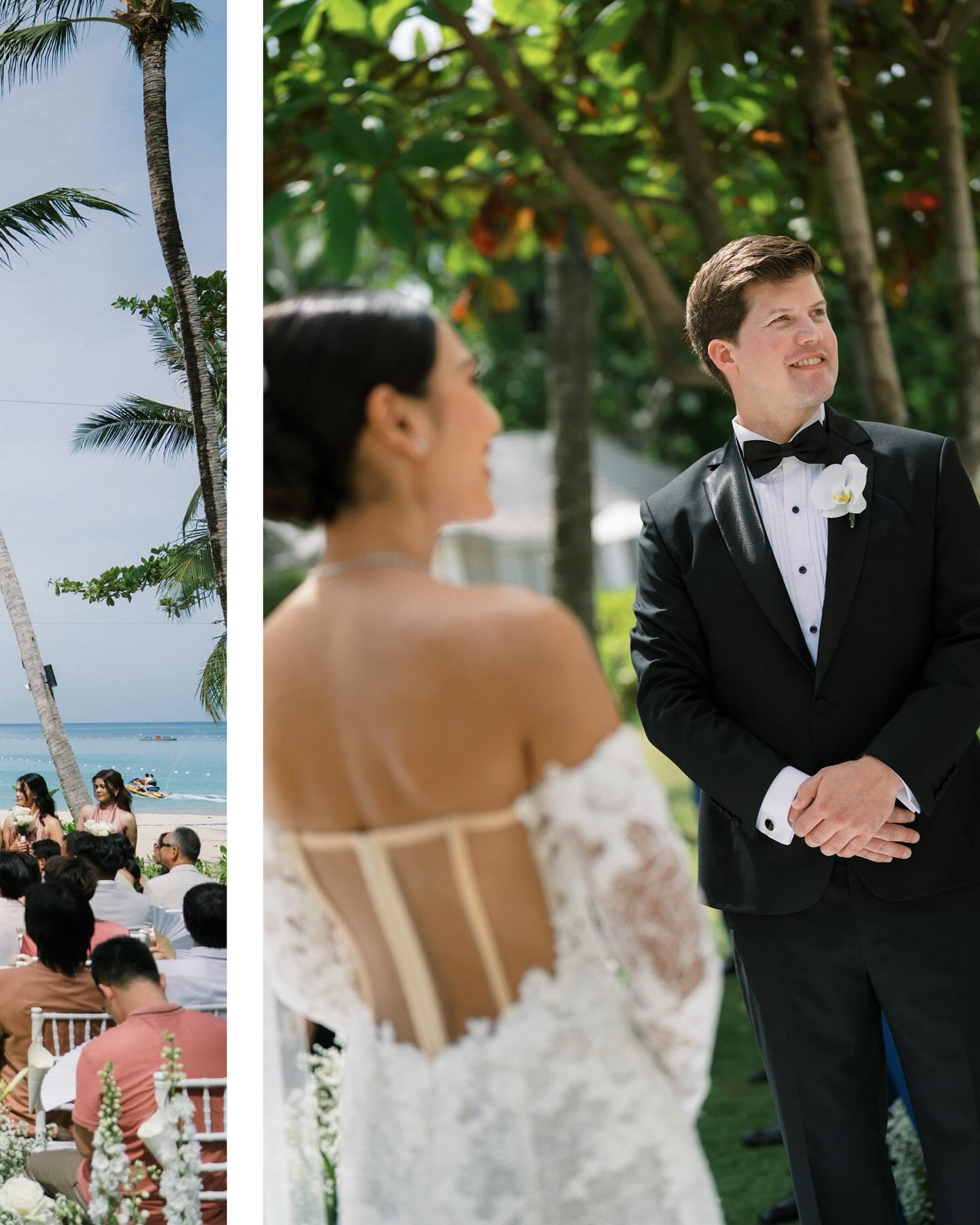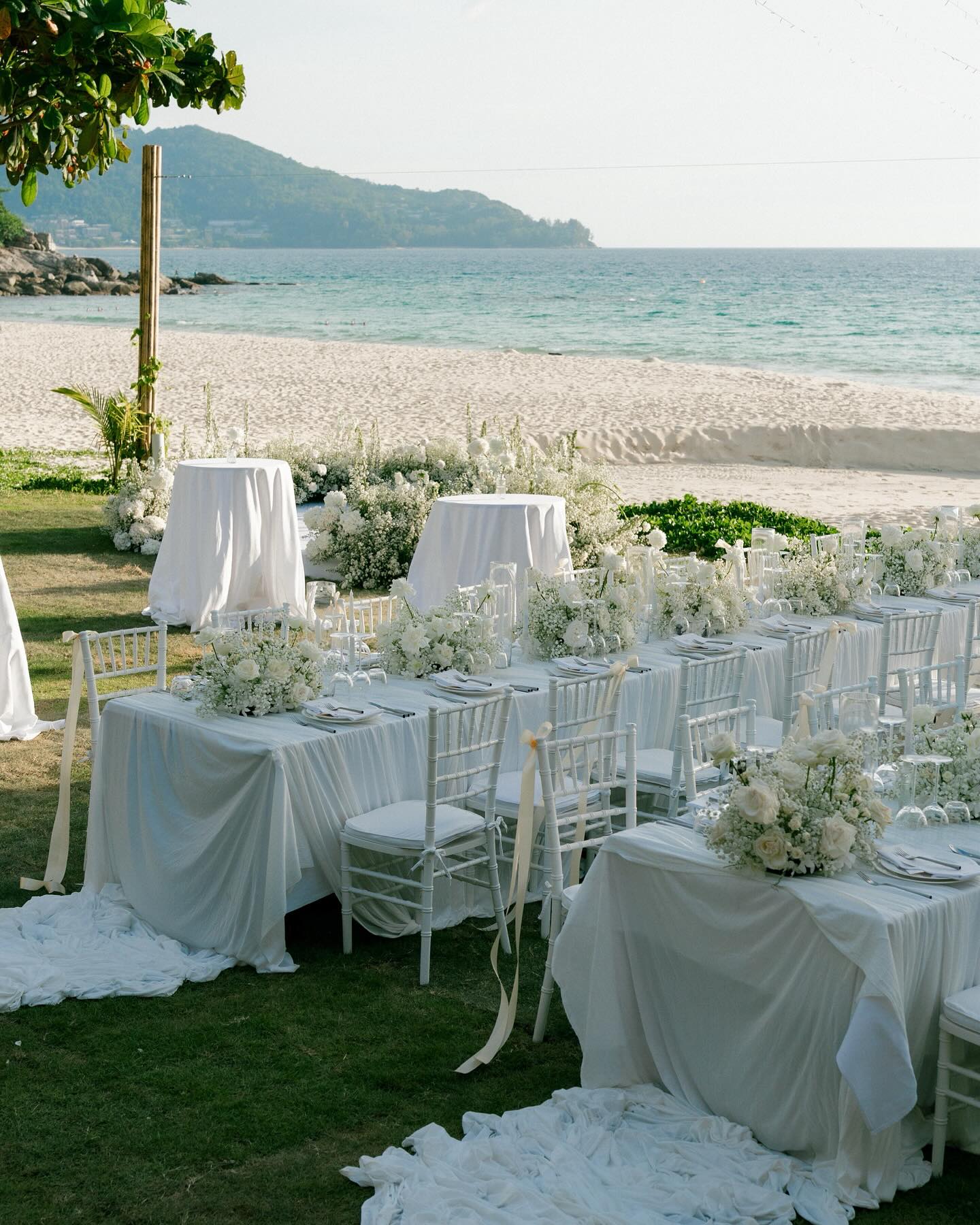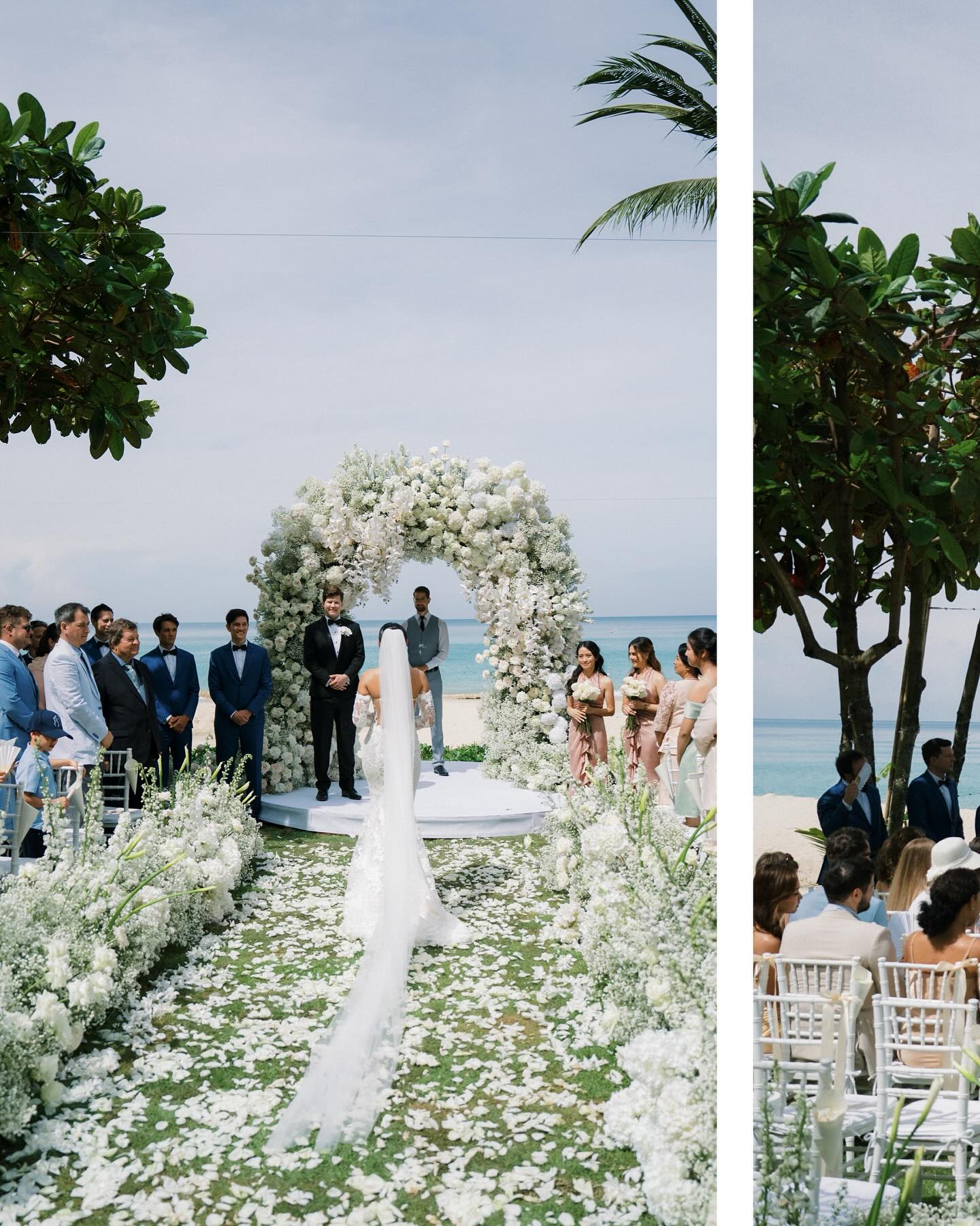 Wedding The Surin Phuket offers an idyllic setting for tropical island weddings photography, featuring a secluded beach, stunning sunsets, and comprehensive wedding services. Couples can exchange vows during a picturesque sunset ceremony on the pristine sands of Pansea Beach, creating an intimate and romantic atmosphere. Alternatively, traditional Thai ceremonies are available, incorporating cultural elements such as a long drum procession, blessings from Buddhist monks, and a water-pouring ritual. The resort accommodations of Roon Photographer the best wedding photographer in Phuket Thailand.