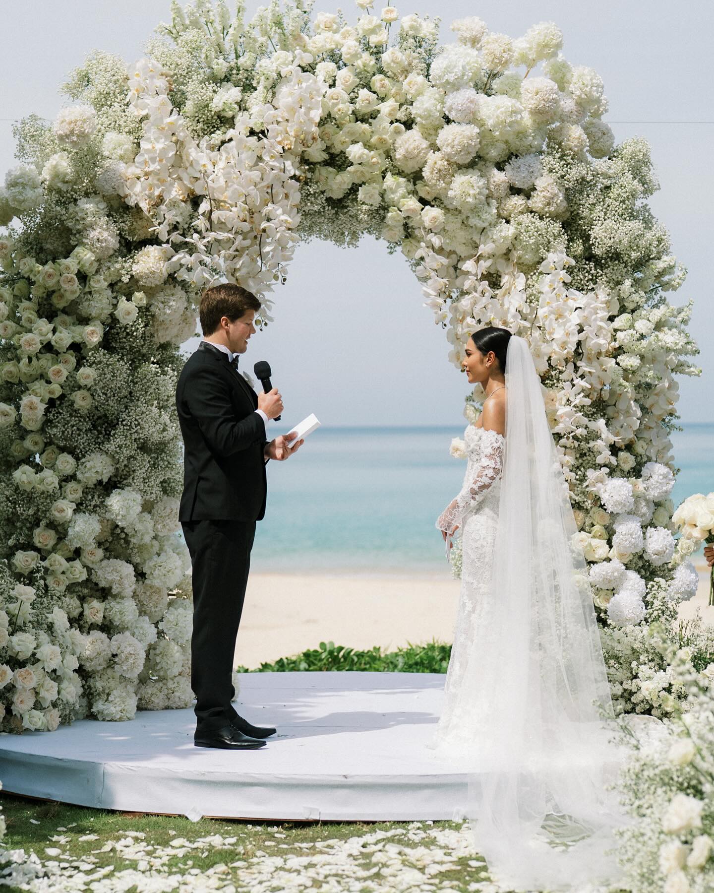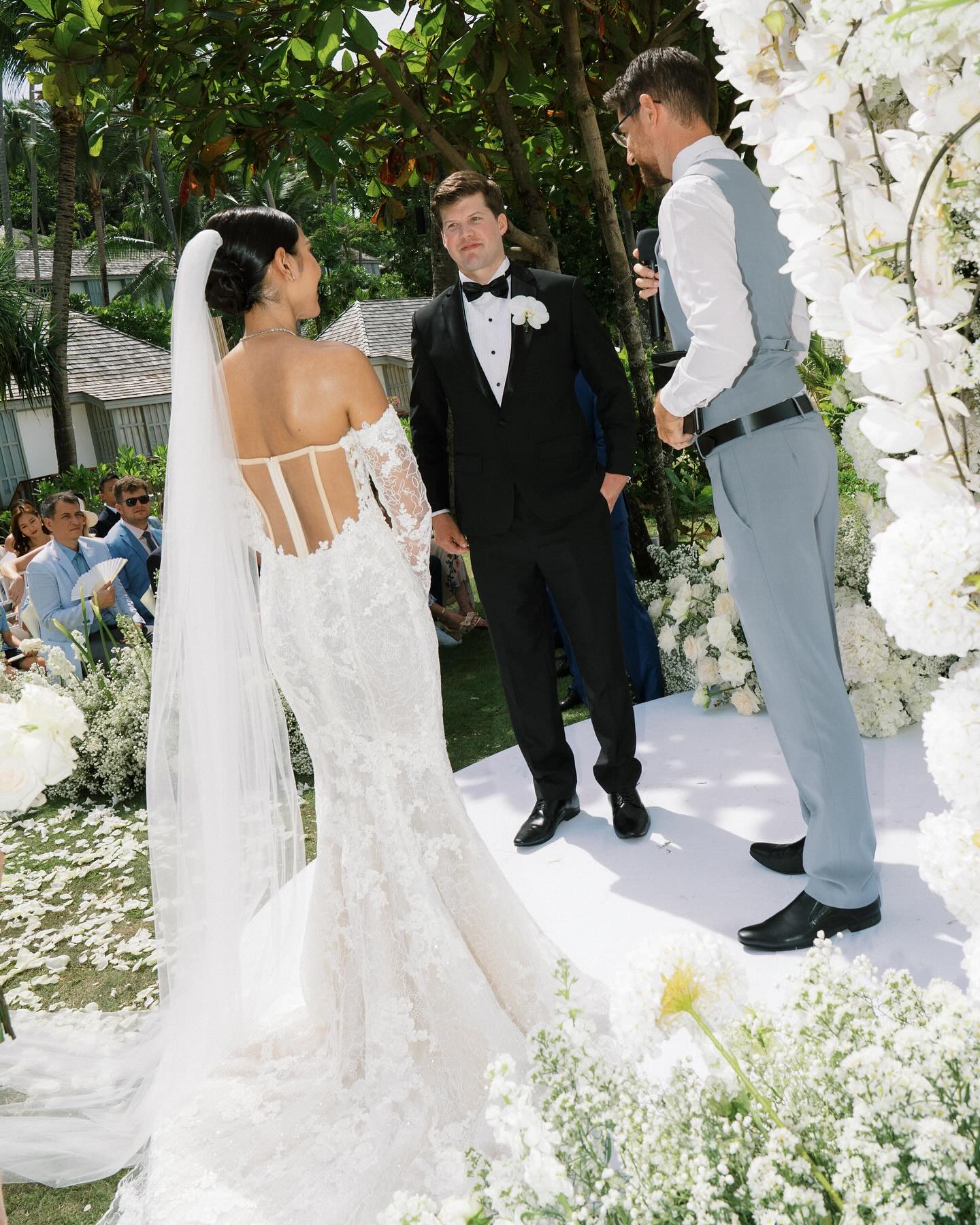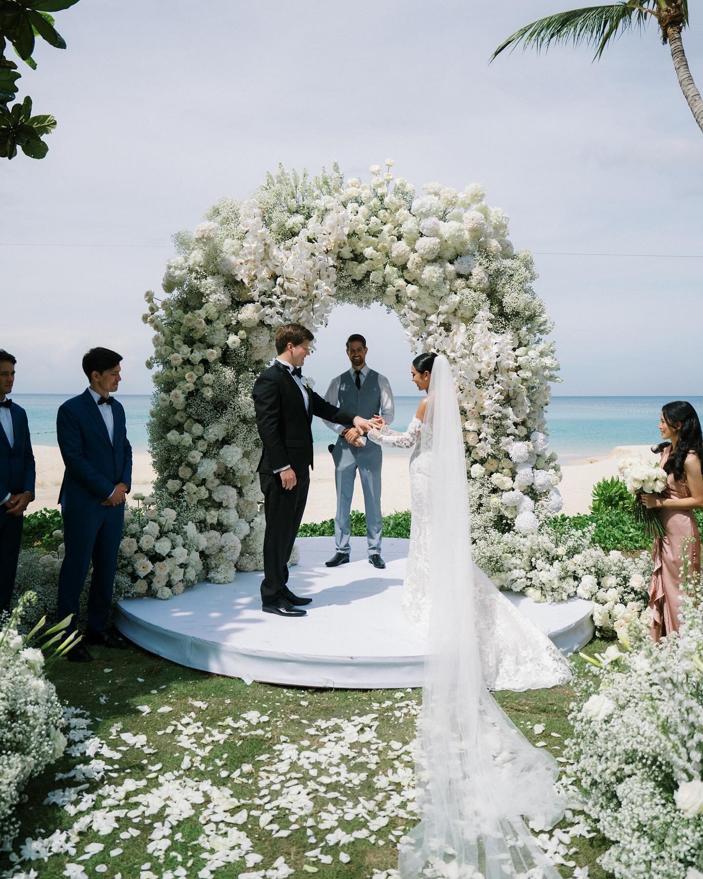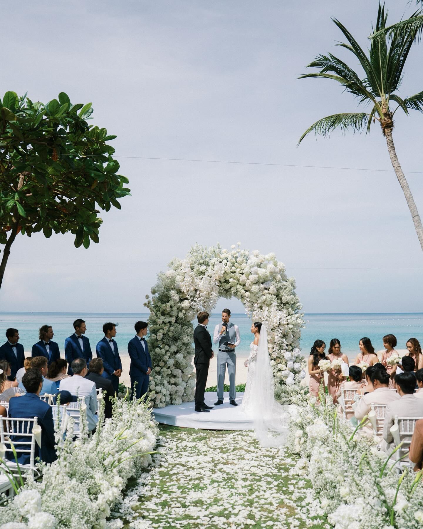 Wedding The Surin Phuket offers an idyllic setting for tropical island weddings photography, featuring a secluded beach, stunning sunsets, and comprehensive wedding services. Couples can exchange vows during a picturesque sunset ceremony on the pristine sands of Pansea Beach, creating an intimate and romantic atmosphere. Alternatively, traditional Thai ceremonies are available, incorporating cultural elements such as a long drum procession, blessings from Buddhist monks, and a water-pouring ritual. The resort accommodations of Roon Photographer the best wedding photographer in Phuket Thailand.